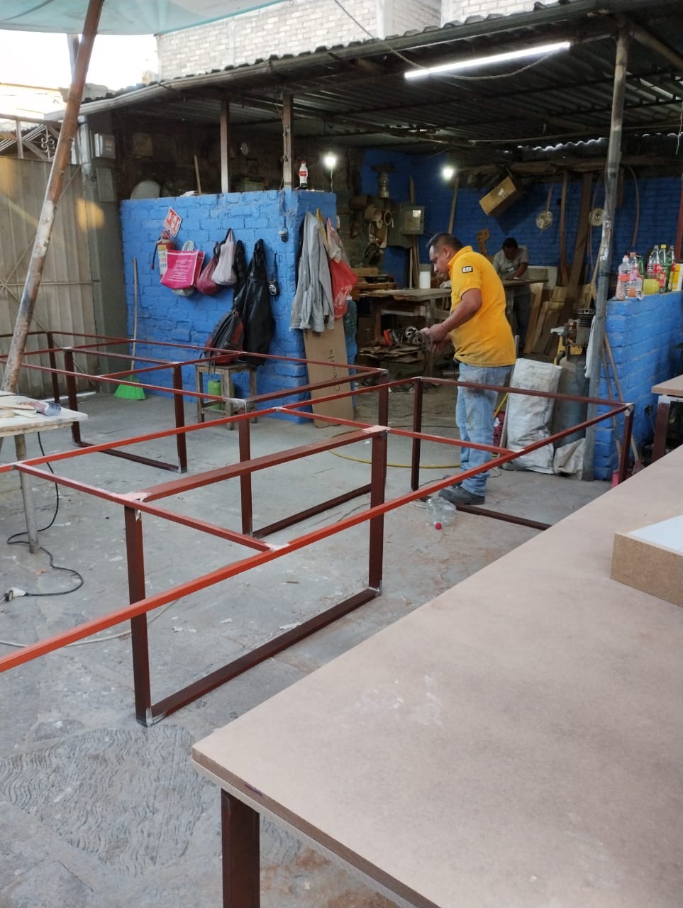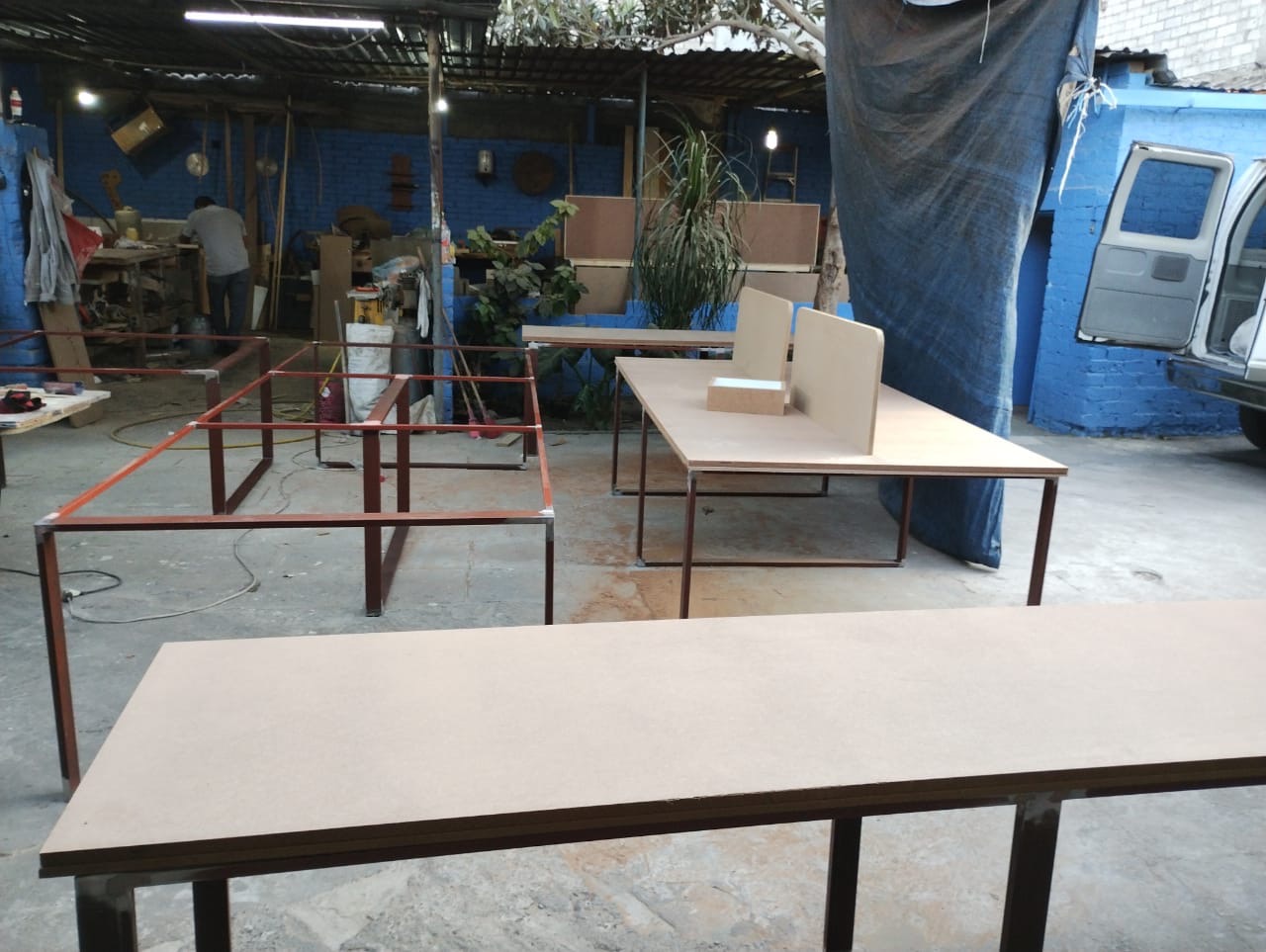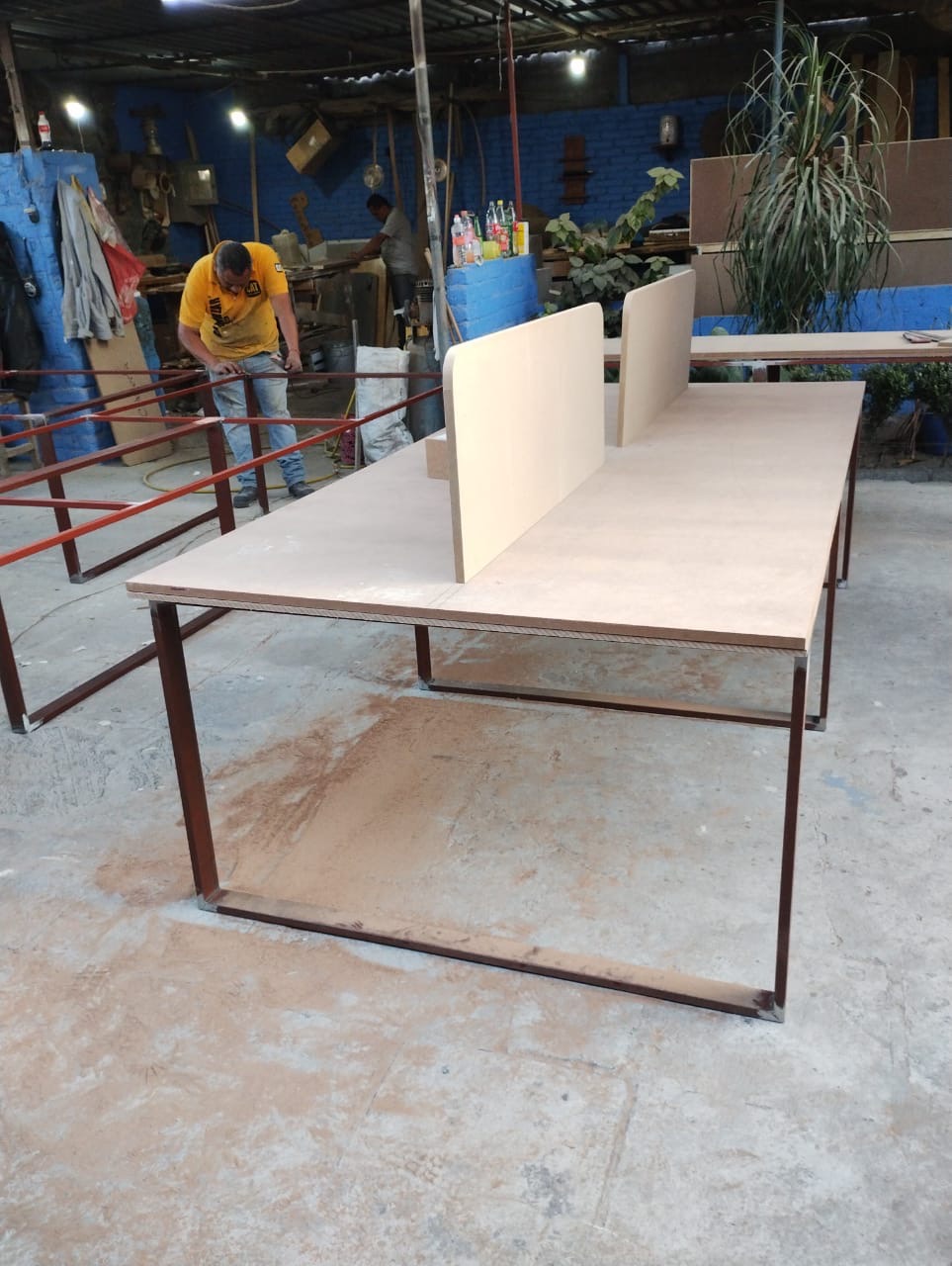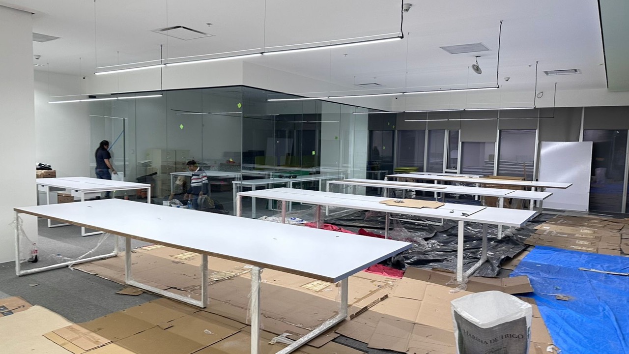 Se han fabricado escritorios con cubierta de MDF en color blanco, conforme a las medidas generales solicitadas por el cliente. Los escritorios incluyen mamparas divisorias revestidas en tela Dublín de color verde manzana, así como un ojal de alimentación eléctrica para computadora y una canastilla para cables, con el fin de proporcionar una solución funcional y ordenada para el espacio de trabajo.