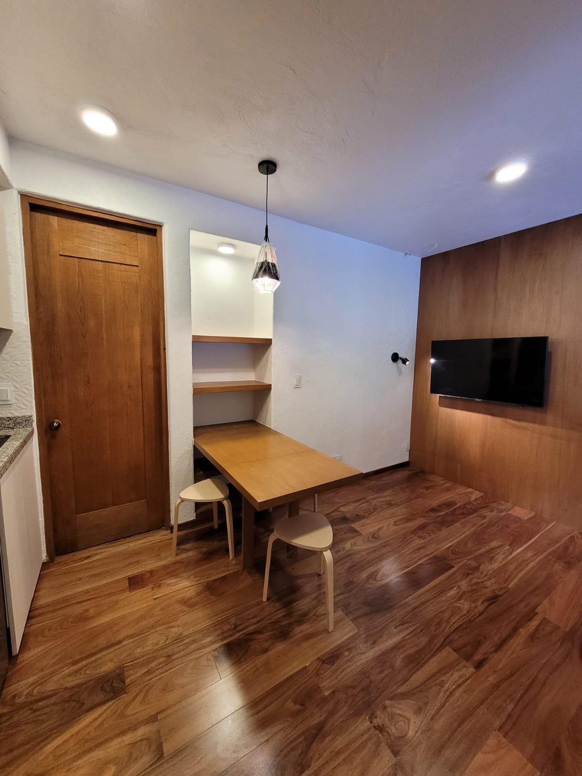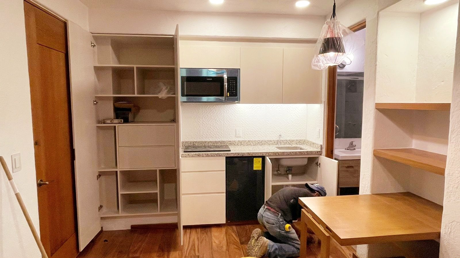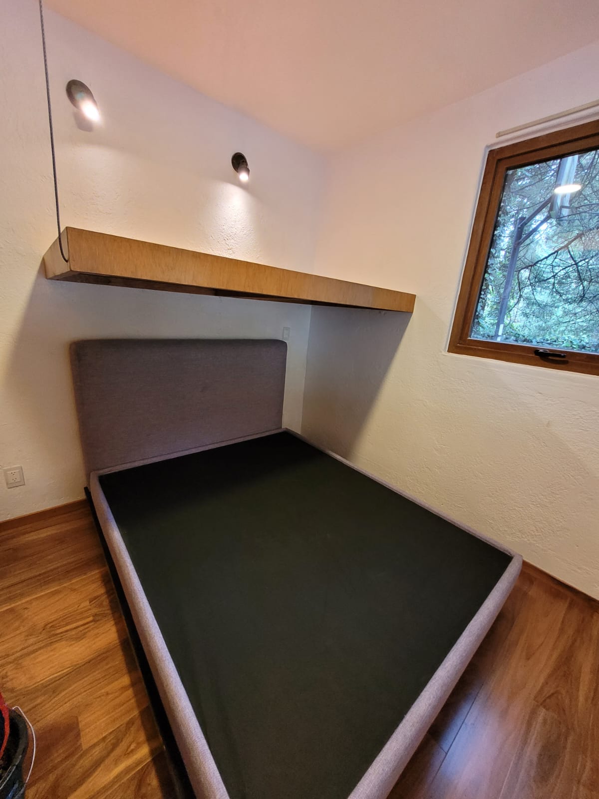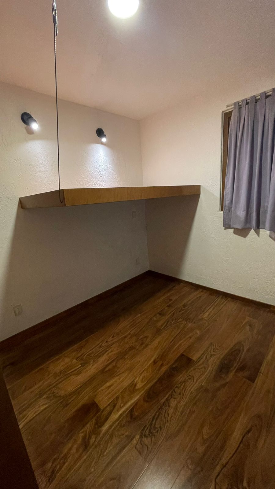 Remodelación de habitación de 30 m2 en un mini loft, diseño y fabricación de muebles en madera, colocación de piso porcelánico imitación madera.