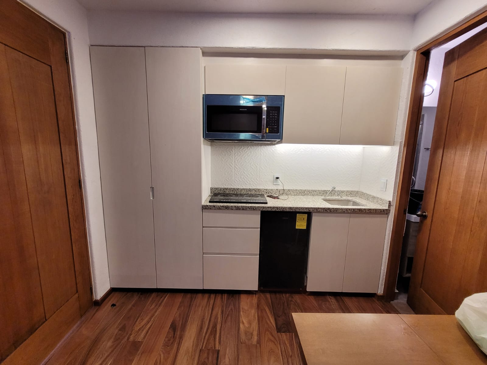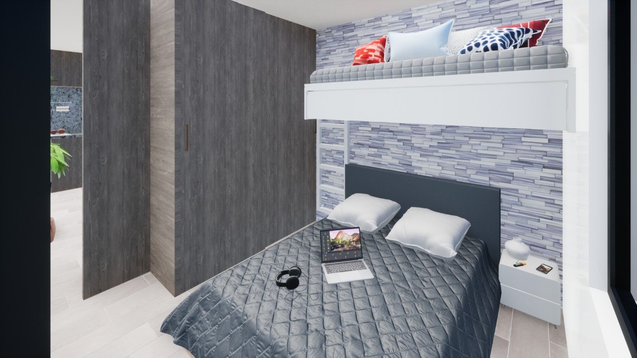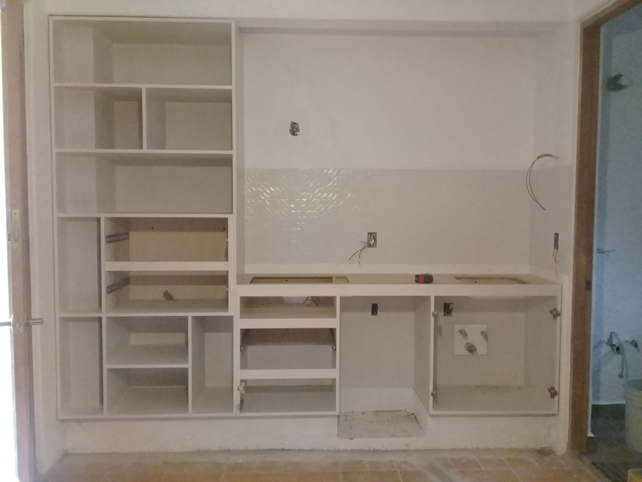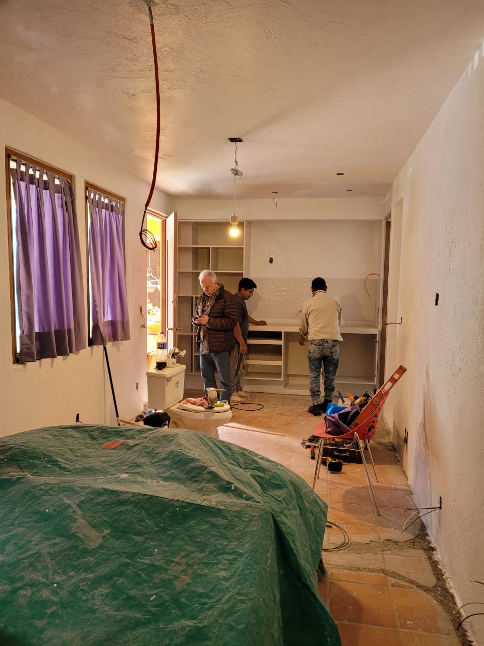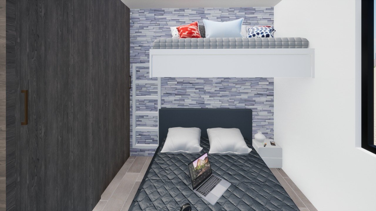 Remodelación de habitación de 30 m2 en un mini loft, diseño y fabricación de muebles en madera, colocación de piso porcelánico imitación madera.