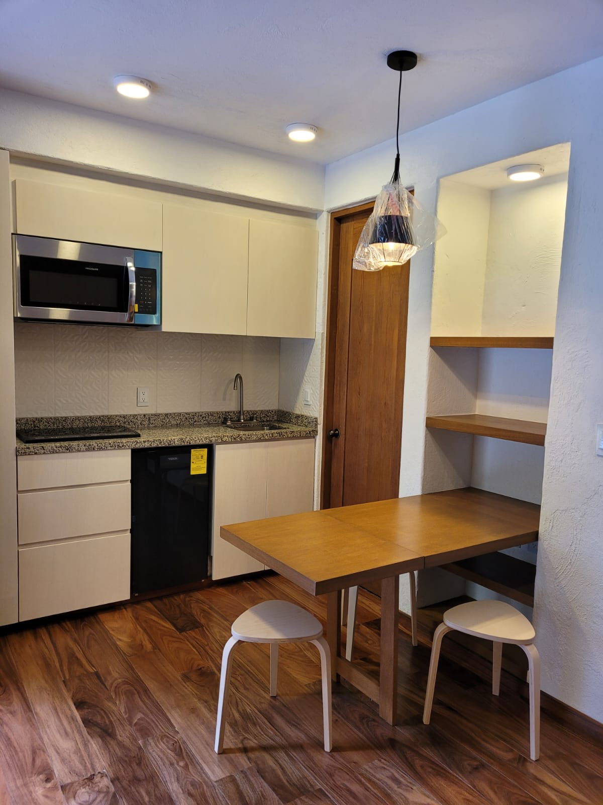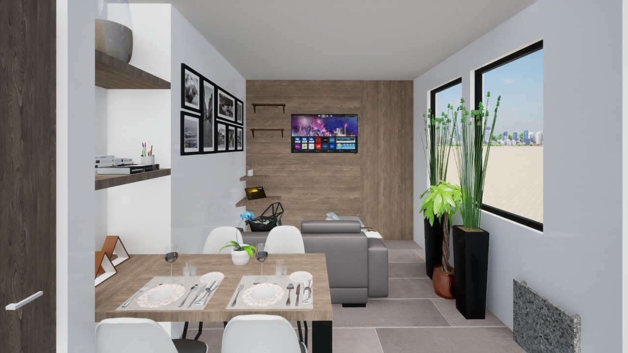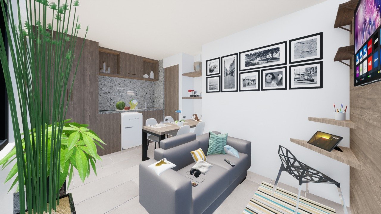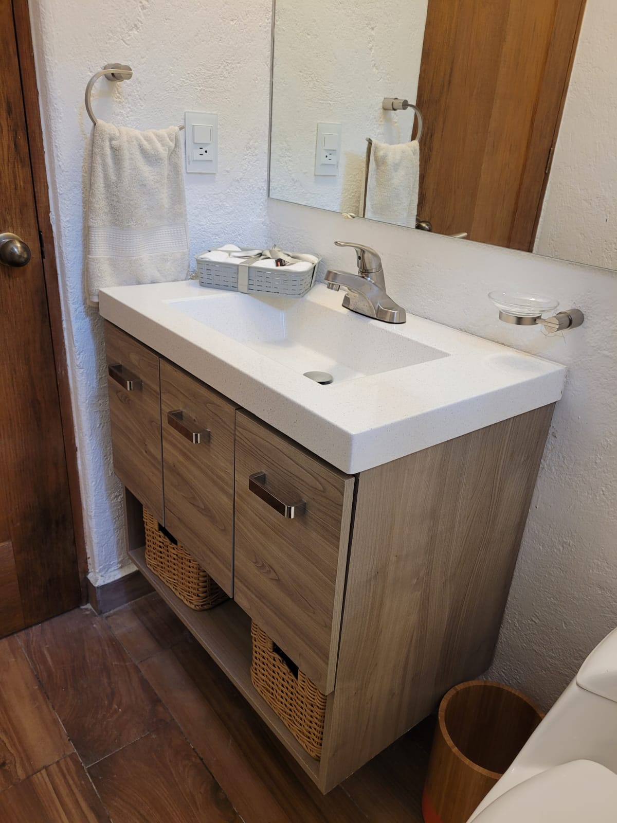 Remodelación de habitación de 30 m2 en un mini loft, diseño y fabricación de muebles en madera, colocación de piso porcelánico imitación madera.